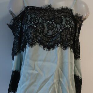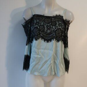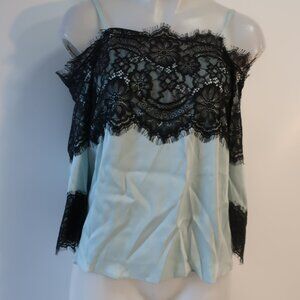 Womens Alice + Olivia Blue, Black Silk Blend Lace Cold Shoulder Blouse S