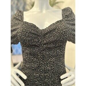 Excellent condition. No flaws. Size tag removed but dress is size medium. My mannequin is a size 8 and it fits her well. It would easily fit a size 6 or a 10 due to the Allover elastic. Very figure flattering.