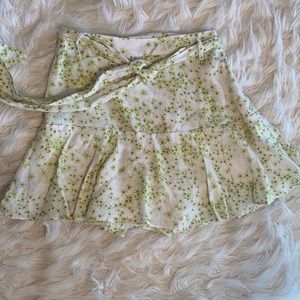 A regular fit mini length cute short skirt for summers with zip closure. Skirt with integrated shorts, belt tie detail, side seam zip with tiered fluted hem, straight hem Lined and shorts are the inner lining.