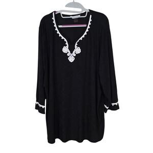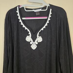 Women's Allison Daley Black Textured V-Neck 3/4 Sleeve Blouse | Size 3X