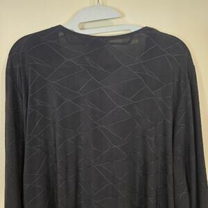 Excellent condition, women's Allison Daley black, textured blouse with 3/4 length sleeves. This blouse is a v-neck. This has side slits and it does stretch.