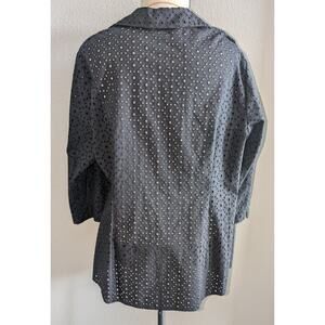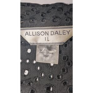 Womens Allison Daley Cotton Blend Embroidered Eyelet Button Up Blouse Black 16W