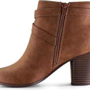 Women's Almond Toe High Chunky Block Stacked Heels Ankle Booties Boots