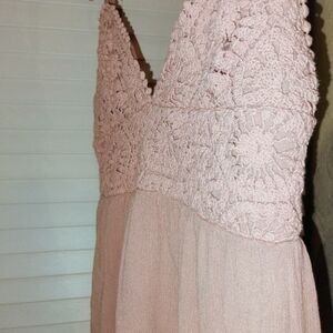Women's Almost Famous Pink Crochet Baby Doll Y2K Top Asymmetrical Hemline Size L