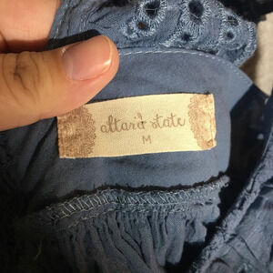 Womens Altar’d State Blouse Blue Ruffle Sleeves Boho Beachy Summer Spring Casual