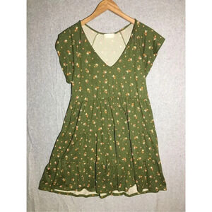 Womens Altar’d State Dress Green Floral Soft Spring Mini Tiered Ruffles V Neck