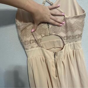 Semi Formal Beige Nude Neutral Sleeveless Adjustable Straps Criss Cross Back Size Small Party School Dance Homecoming Wedding Guest Banquet Graduation Gala Cruise