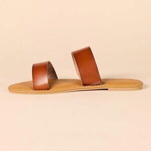 Women's Amazon Essentials Two Band Slip-On Open Toe Sandals – Size 10 – Tan – NWT