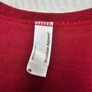 This Women's American Apparel T-Shirt features a beautifully handmade Elephant Decal in a vibrant shade of Red. The T-Shirt is Size Medium and is suitable for women who prefer Regular Size Type clothing. The Brand is American Apparel, known for its high-quality products.