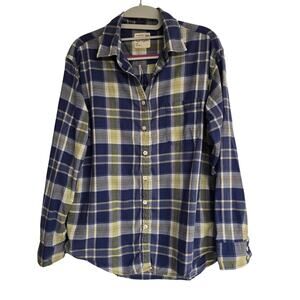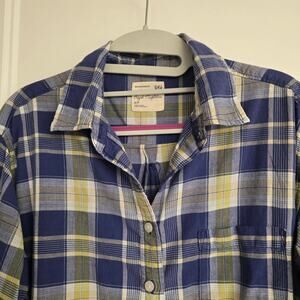 Women's American Eagle "Boyfriend Fit" Blue Yellow Plaid Button Down Size Small