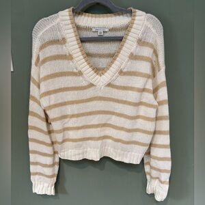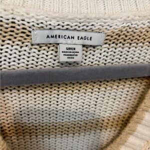 Women’s American Eagle Cream and Tan V-Neck Sweater