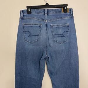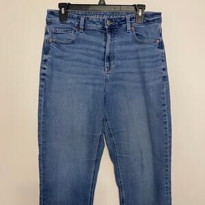 Womens American Eagle Mom Jeans 10 Long High Rise Straight Leg Blue Casual