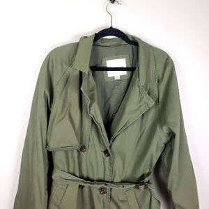 Women's American Eagle Olive Green Long Double Breasted Trench Coat Size XL
