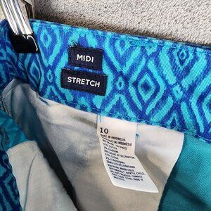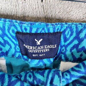 Womens American Eagle Shorts Teal Blue Geometric Design Midi Stretch Size 10