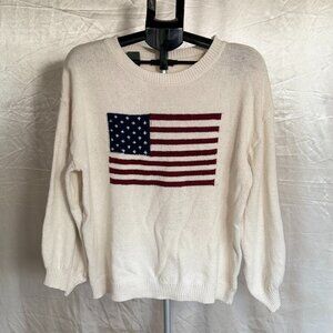 Patriotic and cozy, this knit sweater features a bold American flag design on the front, perfect for showing your stars-and-stripes spirit. Made with a soft, mid-weight knit, it’s versatile enough for casual wear, festive holidays, or layering when the weather cools down. The crew neckline and relaxed fit give it a laid-back, everyday vibe.