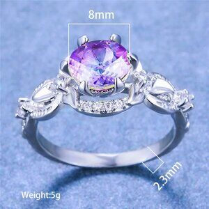 ☆ This Brand New Women's Charming Ring features an Amethyst Round Cut with CZ Pavé Accents. The setting is dipped in rhodium for extra protection. You may see the last pic for the dimensions of the ring. The ring is "true to pics".