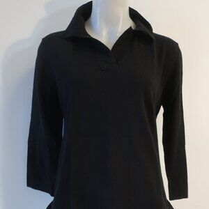 Womens Amina Rubinacci Black Collared 100% Cotton Knit Sweater 48 US/10-12