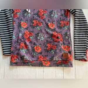 This adorable floral and striped sweatshirt is in good used condition. Some minor pilling see photos for details. This runs fitted, not a baggy fit and not their triple stretch fit.