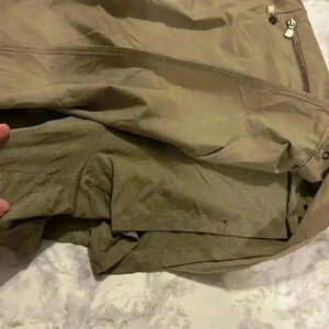 Zipper pockets and elastic waistband. Snap sides. Stretchy under shorts.