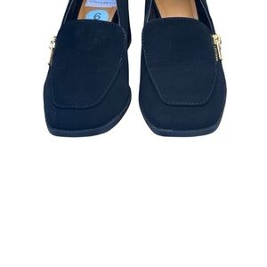 Women’s Andiamo Black Faux Suede Abrant Block Heel Loafer with Gold Trim