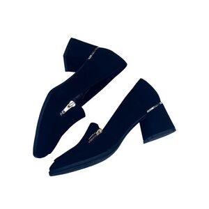 These black Abrant faux suede loafers by Adriano are a classic smart style to add to any wardrobe. Block 2 in heel has a gold band at the top that adds interest.