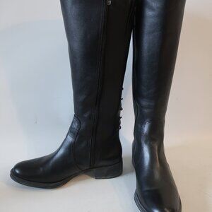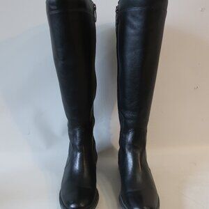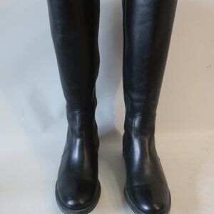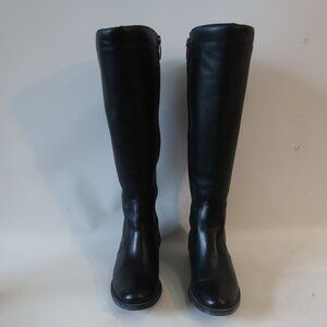 Womens Andre Assous Black Leather Back Lace Up Knee Boots 37 1/2/US 7.5