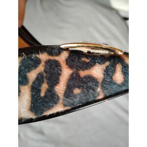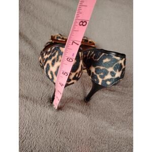 They feature a leopard print, giving them a bold and eye-catching look. The gold buckle on the front adds a touch of elegance.