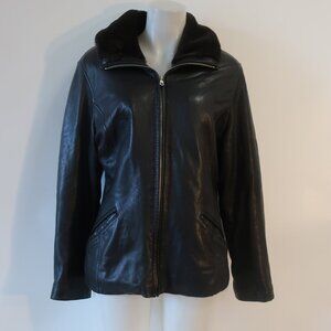 Womens Andrew Marc Additions Black Full Zip Faux Fur Collar Leather Jacket L