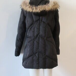 Womens Andrew Marc Black Down Coat W/Raccoon Fur Hood L