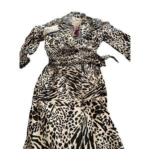 Women's Animal Print Strong Shoulder Trench Coat Sergio Hudson Black M Medium