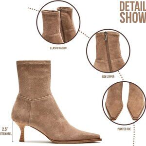 Features: These stylish ankle boots have a pointed toe and high stiletto heel that’s perfect for elevating any look. Side zipper makes slipping in and out easy, and the slip-resistant rubber sole adds stability. Made with cruelty-free synthetic leather, these boots are both chic and reliable—all-day comfort with a padded sole.