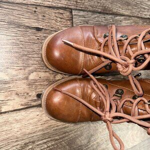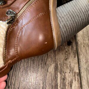 Women's Ankle Boots Brown Faux Leather Sherpa Tall Thick Heel Booties Size 7