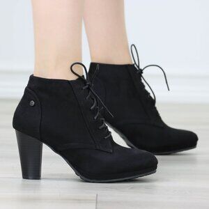 Womens Ankle Boots Lace Up Block Heel Booties Black Faux Suede
