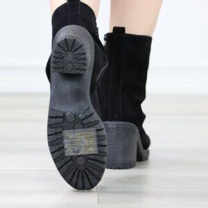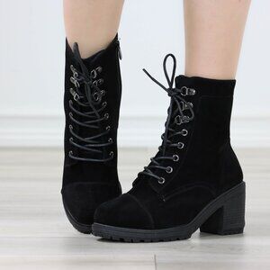Womens Ankle Boots Lace Up Lug Sole Rubber Low Heel Black Faux Suede