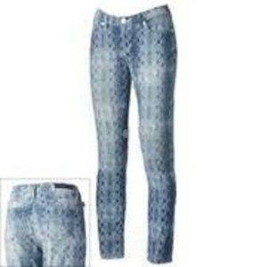 Womens Ankle Jeans Rock & Republic 8 Blue White Snakeskin Skinny Lowrise Denim