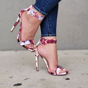 Women's Ankle Strap High Heels Sandals Flower Print Color