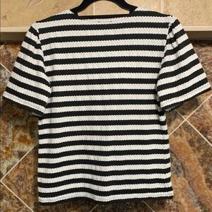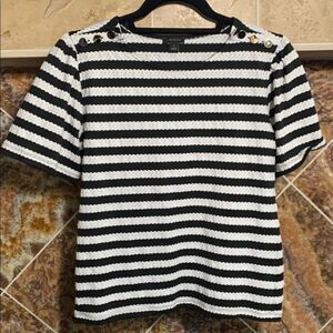 Women's Ann Taylor Black and White Stripe Flutter Sleeve Top Gold Buttons Medium