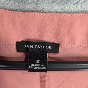 Womens Ann Taylor Blush Pink V-Neck Blouse 100% Polyester Long Sleeve Size S