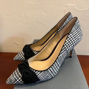 Women's Ann Taylor Frannie Flannel Bow Pumps Place & White Houndstooth Size 7