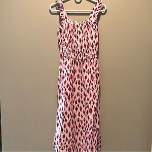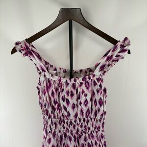 This stylish maxi dress from LOFT features a smocked bodice with ruffled detailing, offering a chic and comfortable fit. The sleeveless design showcases a vibrant purple and white color palette, perfect for adding a pop of color to your wardrobe. Ideal for warm weather, this top combines elegance with a touch of playful flair. Size Petite Extra Small XSP **New without tags**