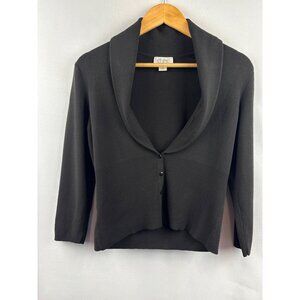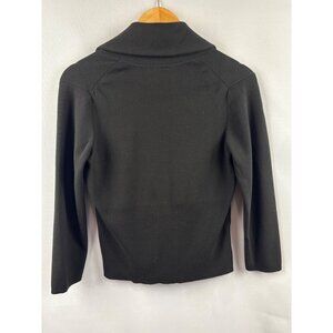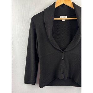 Women’s Ann Taylor Loft Black Collard Button Sweater with Ribbed Details, Size M