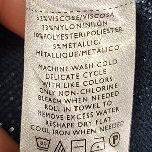 This Ann Taylor turtleneck sweater exudes a sophisticated appeal with its metallic blue hue. Crafted from a viscose blend, it offers a luxurious feel and a chic look, ideal for elevating your wardrobe with a touch of elegance.