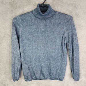 Womens Ann Taylor Metallic Blue Turtleneck Sweater Long Sleeve Size L