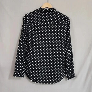 Women's Ann Taylor Polka Dot Button Down Long Sleeves Blouse, Black with White Polka Dots, Size Small