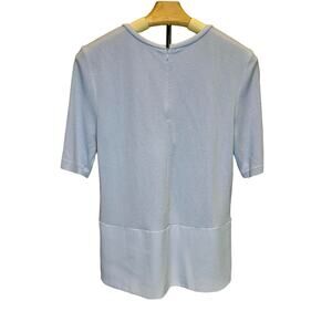 Ann Taylor Short Sleeved High-Low Mixed Media Zip Back Light Blue Blouse Top S