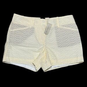 Women's Ann Taylor Signature 6 Small 4” Shorts Chino Khakis Lace Ivory Cream NWT