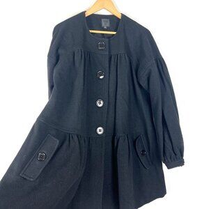 Women’s Anna Sui Black Wool Coat sz M Herringbone Oversized Lagenlook Artsy