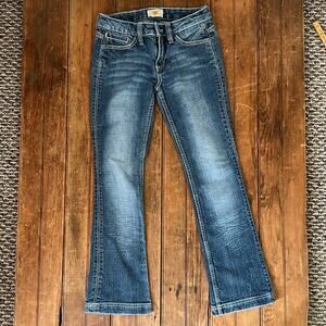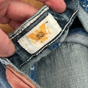 Women’s Anthropologie Antik Denim embroidered low rise flare leg jeans size 25