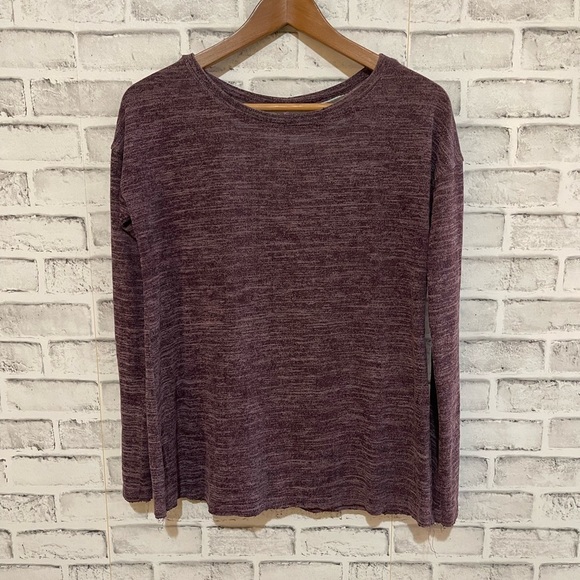 Women’s. Hem & Thread. An Anthropologie brand. Purple heather lightweight sweater. Long sleeves. Open upper back. Preowned. No stains/tears. Size medium.