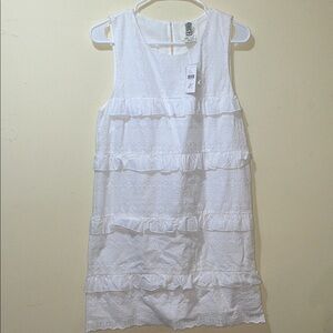Womens Anthropologie Lilis Closet White Floral EyeLet Ruffle Tiered Shift Dress